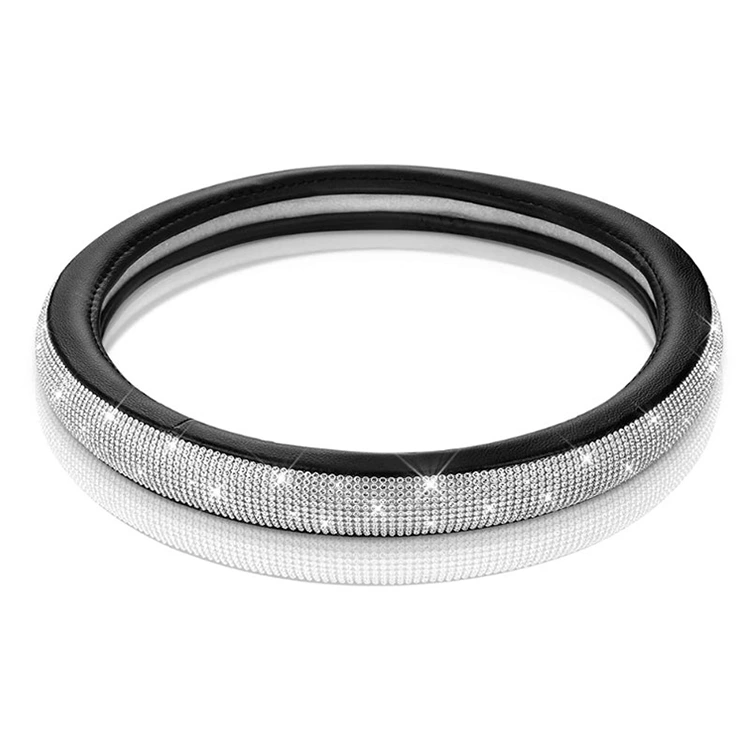 Material avansat: Fabricat din piele PU de calitate superioară și artizanat cu diamante, această husă avansată pentru volan cu diamant strălucește mai strălucitor decât produsele similare cu strasuri de calitate superioară și nu vă va răni mâinile.