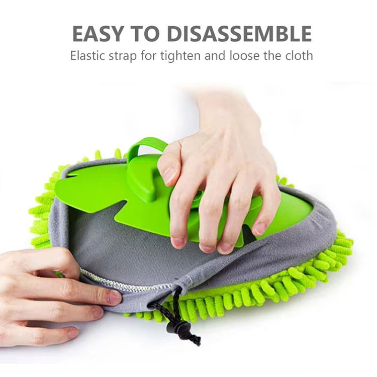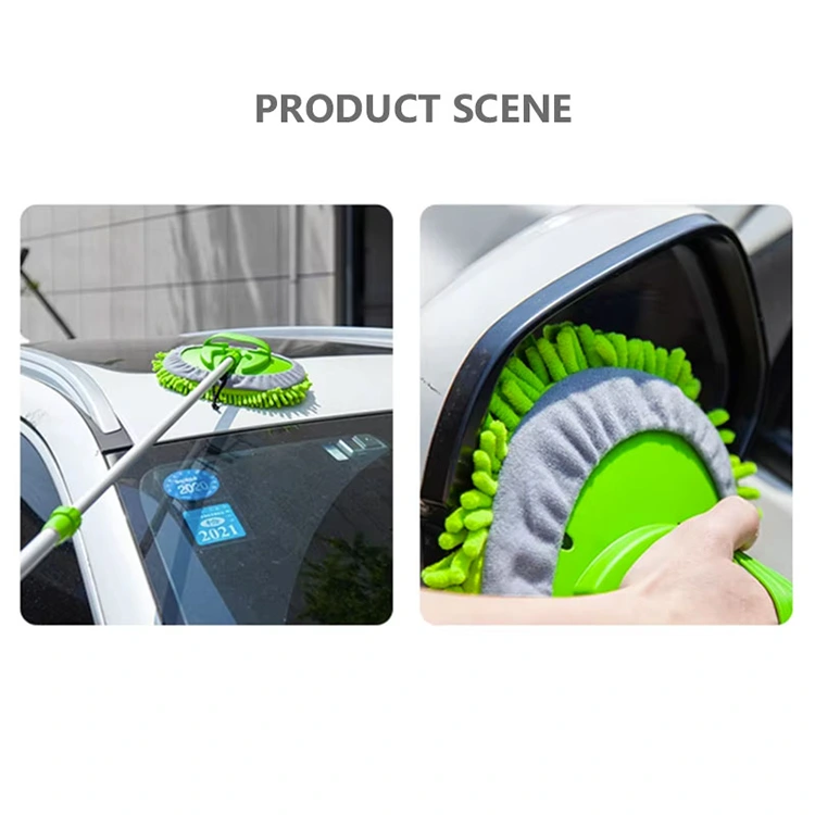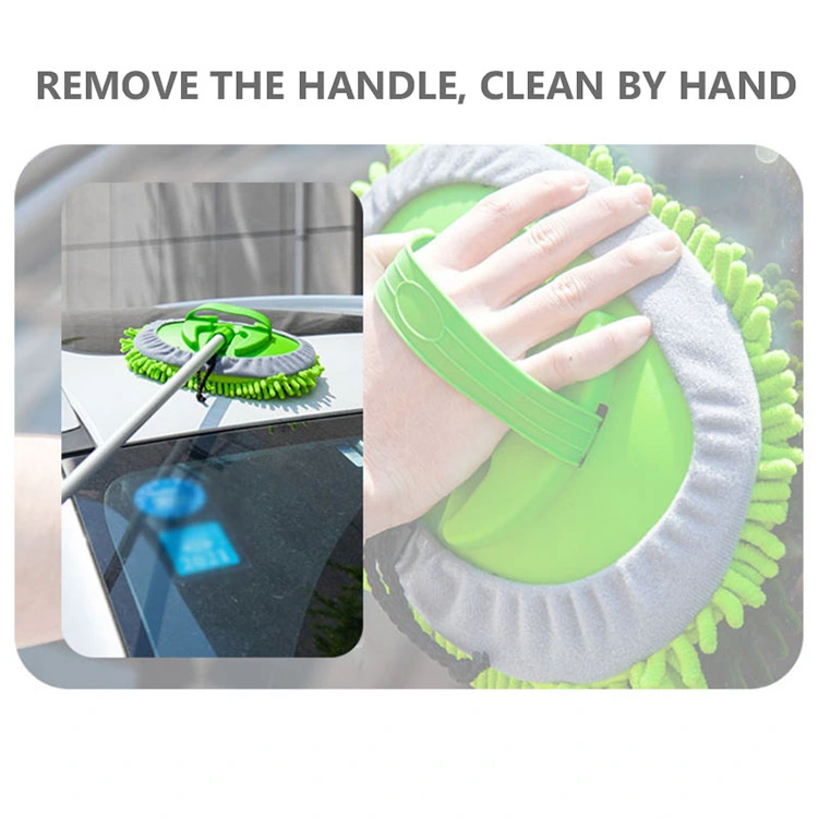 Ușor de dezasamblat și înlocuit: Mopul telescopic de spălat auto la preț ieftin este simplu și de lungă durată. Are o husă de curățare verde detașabilă, cu margine de chenille gri și șnur încorporat. Cureaua elastică îi permite să fie strâns sau slăbit cu ușurință, făcându-l ușor de reglat și înlocuit.