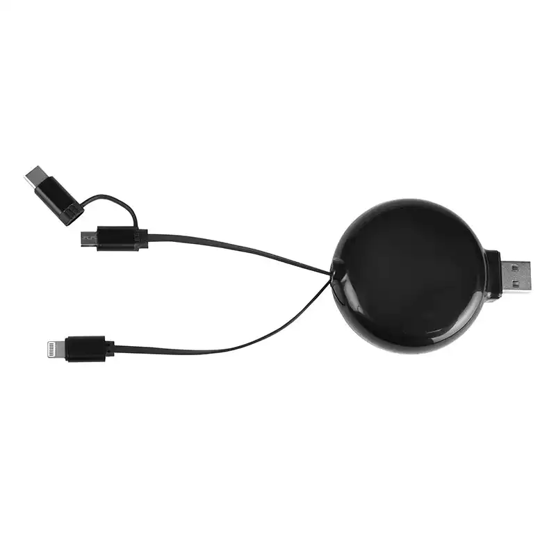 O soluție versatilă 3-în-1, cu conectori Lightning, Micro-USB și USB-C integrati pe o singură bobină retractabilă pentru compatibilitate maximă.